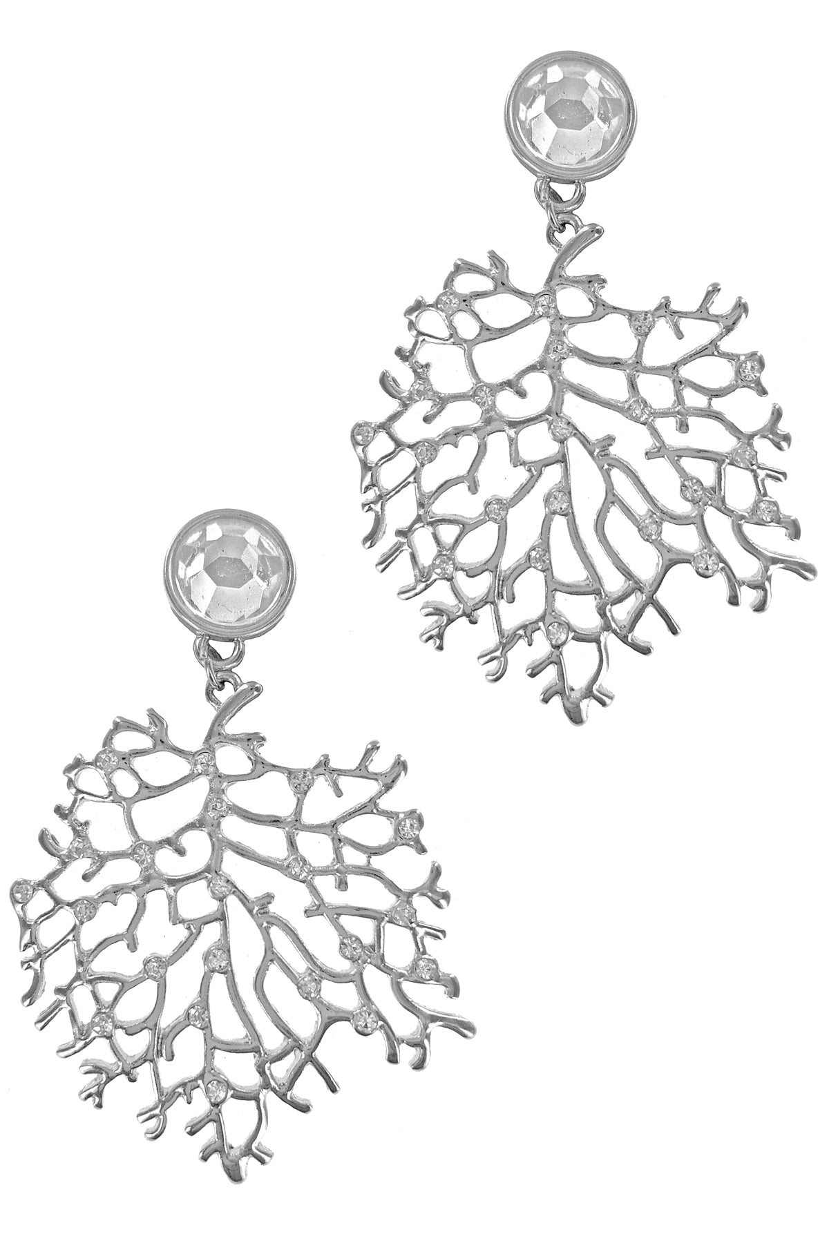 Silver Rhinestones Leaf Dangle Earrings
